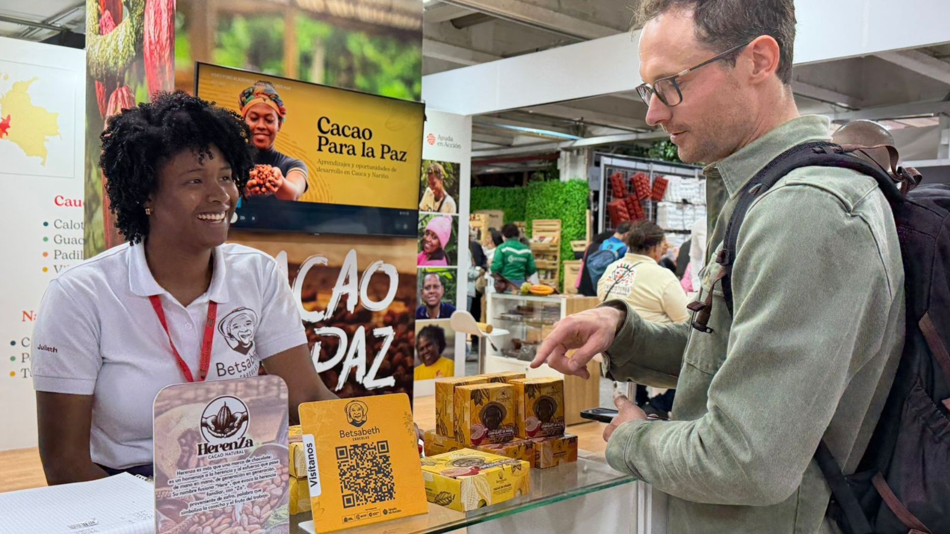 Del 28 al 30 de noviembre, en Corferias, Ayuda en Acción Colombia participó en ChocoShow 2025 con el propósito de visibilizar los avances y aprendizajes del proyecto “Cacao para la Paz”, una iniciativa financiada por la Agencia Española de Cooperación Internacional para el Desarrollo (AECID) que beneficia a más de 400 familias productoras de cacao en Nariño, Cauca y Valle del Cauca. Desde el Stand 414 del Pabellón 6, los visitantes conocieron de cerca 8 organizaciones que han transformado su vidas a través del cultivo, transformación y comercialización del cacao, un fruto que se ha converti...