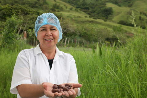 Esperanza es una mujer cabeza de familia, tiene dos hijos y tres nietos. A ella el conflicto armado del país la dejó viuda ya hace más de una década, y lo que ha hecho después de eso, es armarse de valor y construir, junto con otras personas, el sueño del cacao. Desde el 2007, que fue cuando llegó el segundo Laboratorio de Paz, Esperanza ha trabajado por Asocacao. Una asociación que cumple 16 años y en la que, desde el año 2016, funge como representante legal.